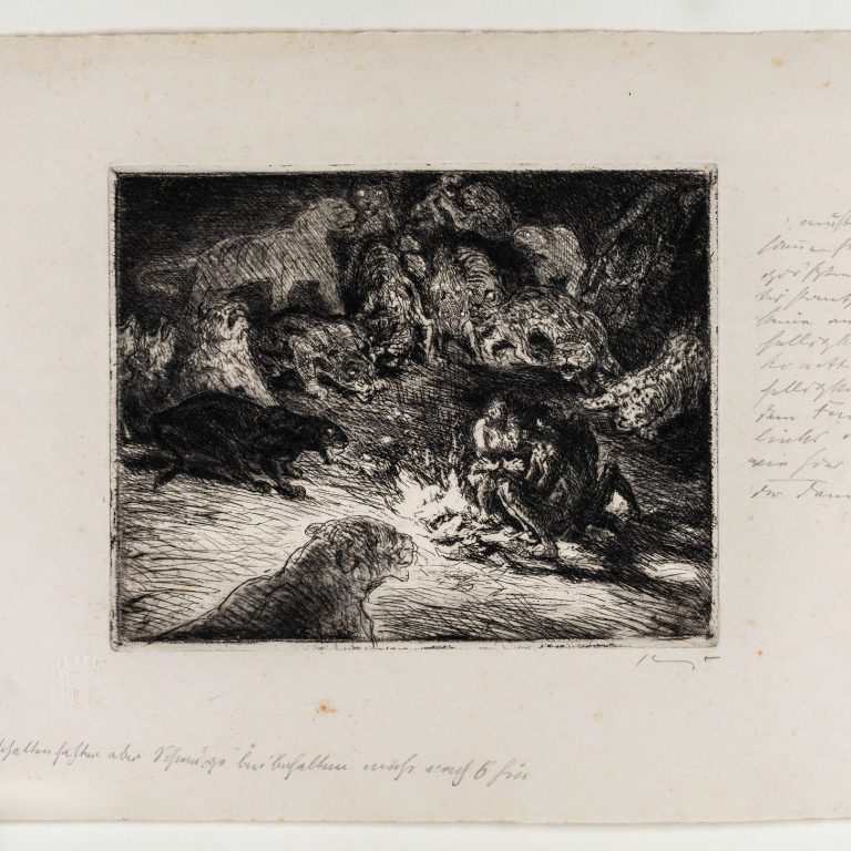 Abb.: Max Slevogt, Die Geängstigten (aus: Schatten und Träume), 1924, Kaltnadelradierung, GDKE, Landesmuseum Mainz