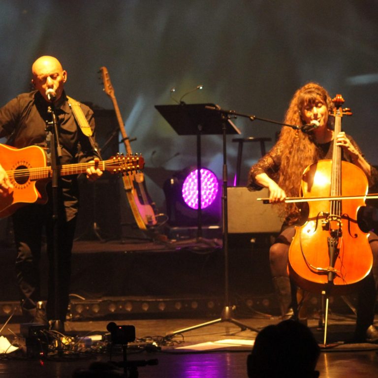 Französisches Flair zaubern die Pariser Musiker Isabelle Boyer (Gesang, Violoncello) und Salvatore Ursini (Gesang, Gitarre), als Duo Absinthe, auf den Slevogthof!